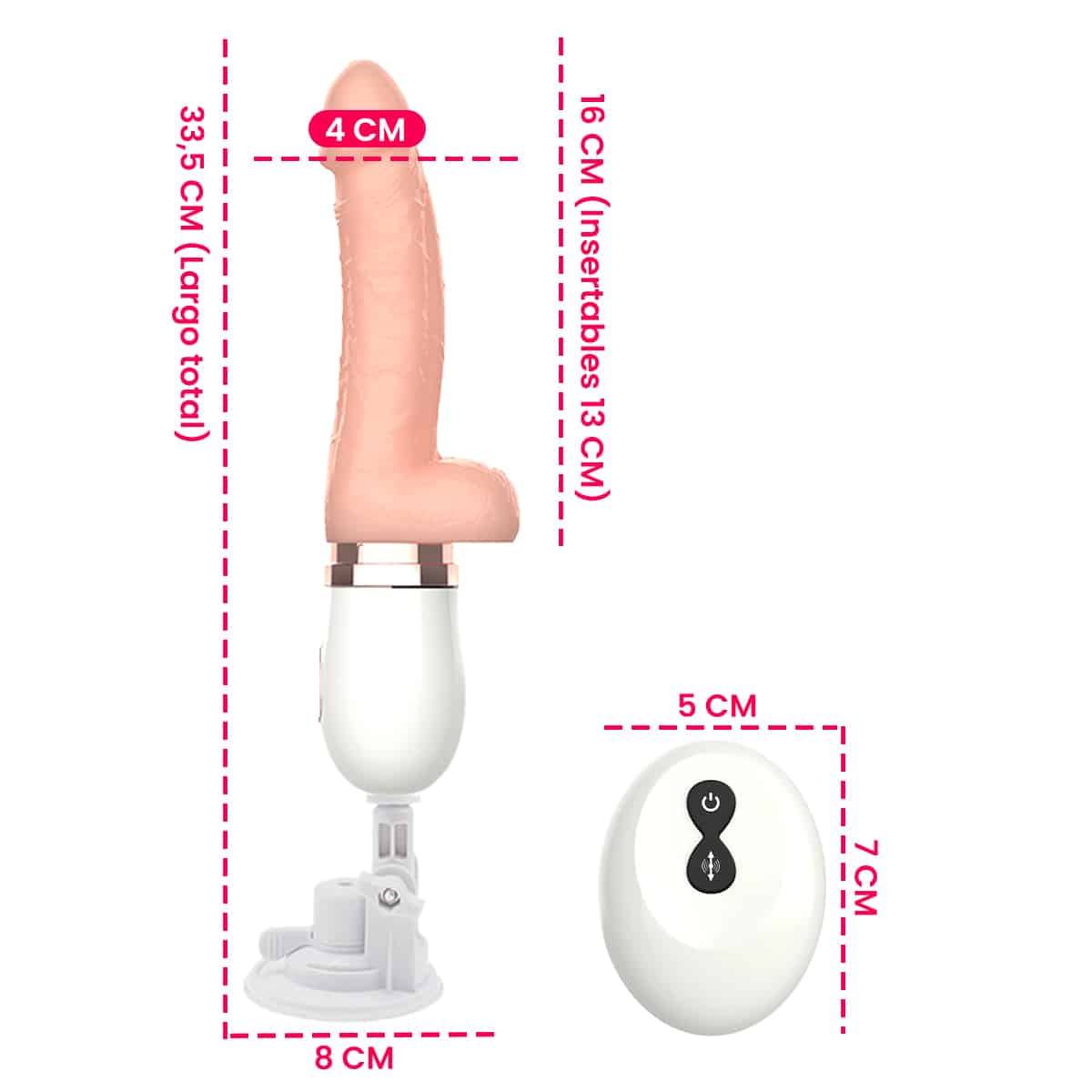 Vive una experiencia intensa con este consolador con movimiento y base con sopapa. Diseñada para ofrecer vibración potente, movimiento telescópico, rotación de 360° y efecto calor, brinda sensaciones realistas y envolventes. Su base con sopapa extrafuerte permite un uso manos libres en superficies lisas, mientras su control intuitivo facilita ajustar modos e intensidades de forma sencilla.