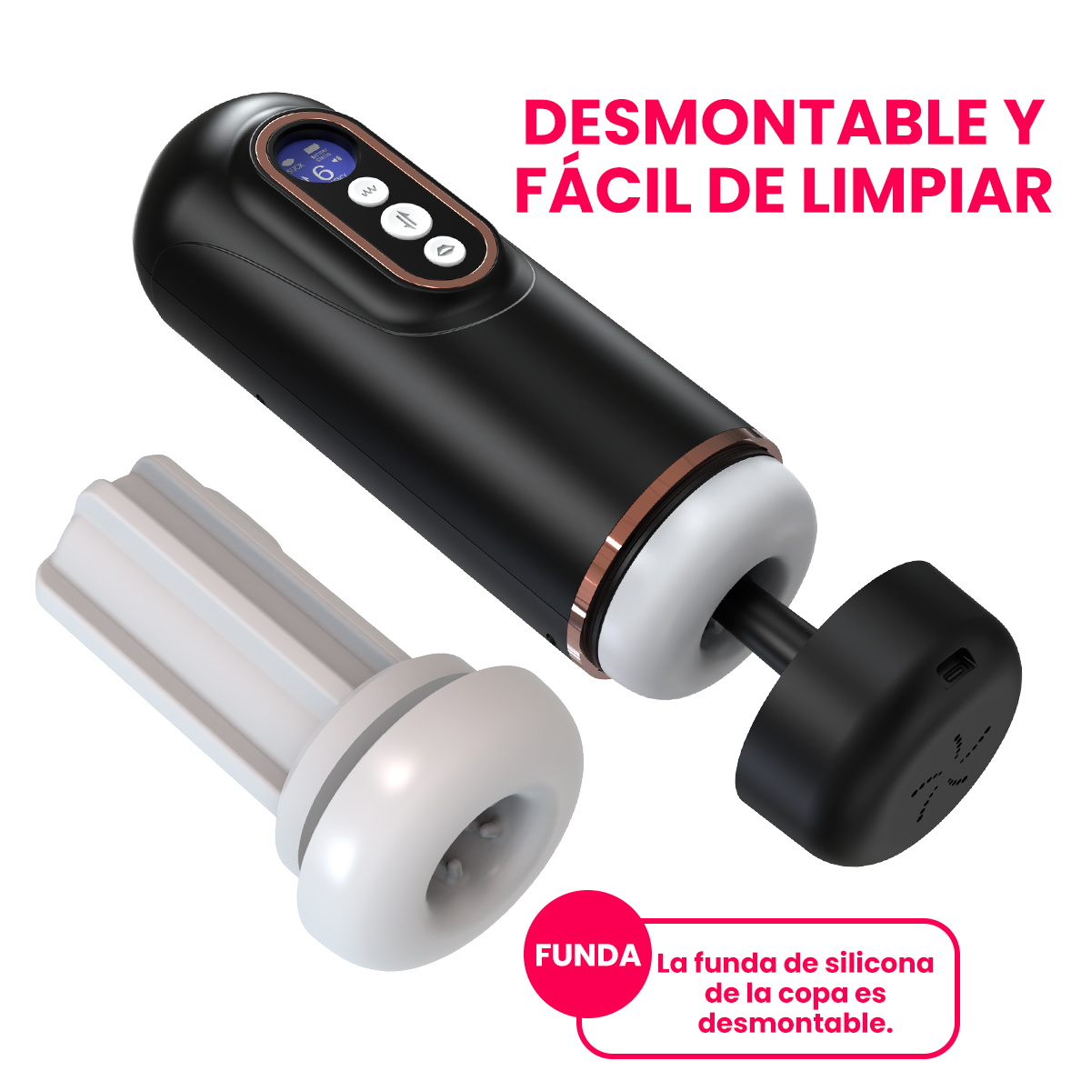 Su pantalla LED te permite visualizar y controlar fácilmente todas las funciones, mientras su funda desmontable facilita la limpieza y el mantenimiento. Fabricado con materiales de alta calidad, es cómodo, seguro y pensado para acompañarte en tus momentos más íntimos.